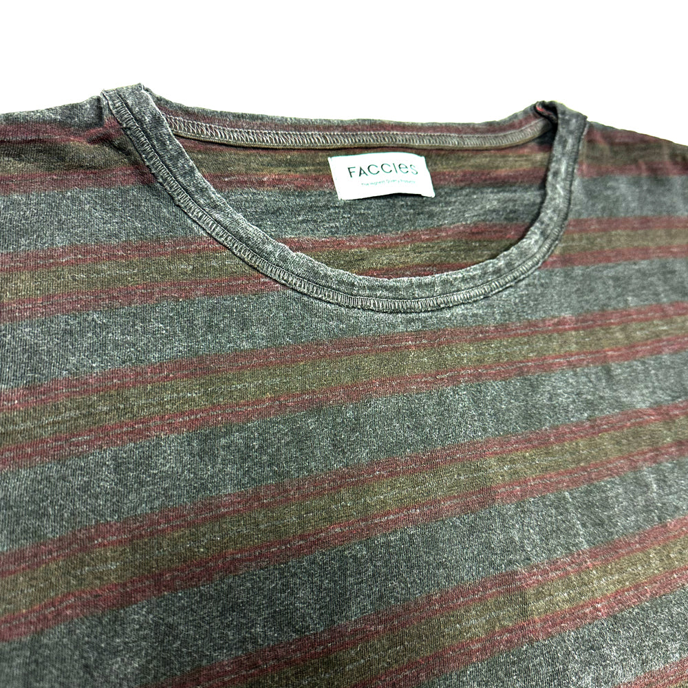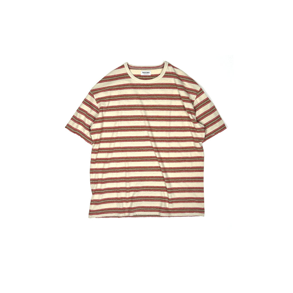 素材には国産糸21/1Reコットンを使用し、洗い後にタンブラー乾燥で仕上げた先染めのボーダー生地を使用。