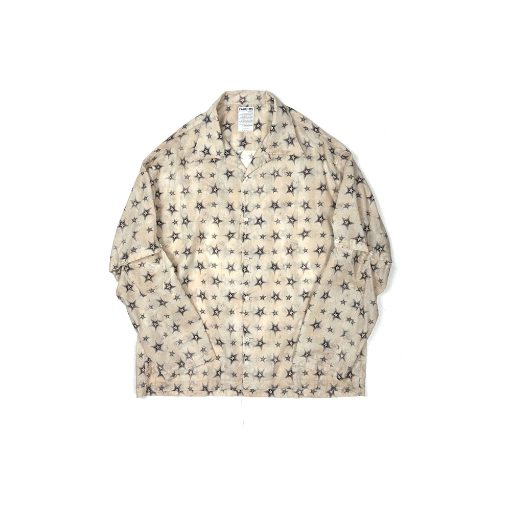 手書きの星柄のグラフィックを落とし込み、2024ssのタイトルとしても上げたTWINKLE STARをイメージ。今の僕自身FACCIESをやる上で星は大切な道標の意味合いがあります。